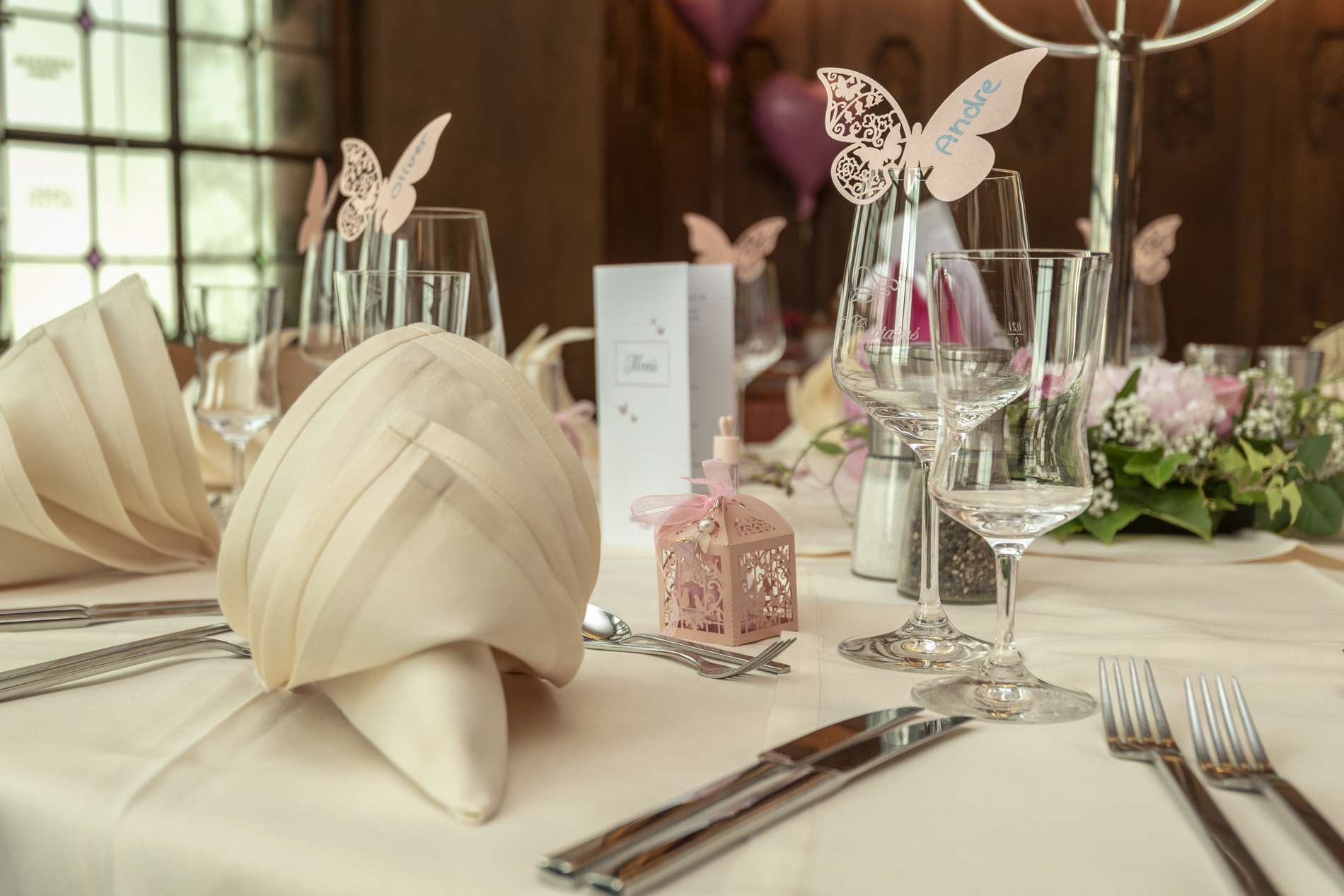 Für Ihre Veranstaltung übernehmen wir die komplette Bewirtung – bei kleinen Gesellschaften genießen Sie à la carte, bei größeren Gesellschaften empfiehlt sich die Festlegung auf ein Menü. Gerne besprechen wir hier gemeinsam Ihre Wünsche und Ideen. Unser gut geschultes Fachpersonal kümmert sich für Sie um alles – von der stilvollen Tischdekoration mit Kerzen, Servietten und Menükarten über die Speisen- und Getränkeauswahl bis hin zum Servieren, Tranchieren und Flambieren am Tisch.